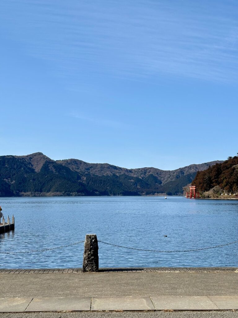 箱根神社のあとは芦ノ湖を散策。山に囲まれた湖で、とても神聖な気持ちになりました。