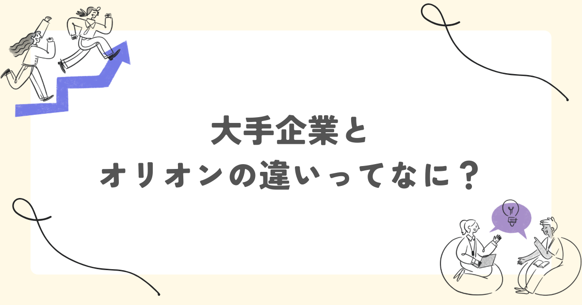 就職や転職を考えるとき、「安定している大手企業」と「成長中の企業」で迷う方は少なくないと思います。もちろん知名度や福利厚生などの面では大手企業に魅力を感じるかもしれませんが、最近ではあえてオリオンのような成長企業を選ぶ人も増えています。そこで、今回は大手企業ではなくオリオンで働くメリットを考えてみました。
